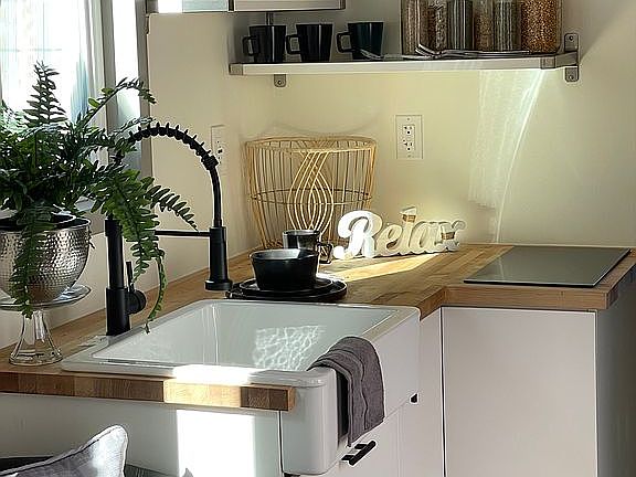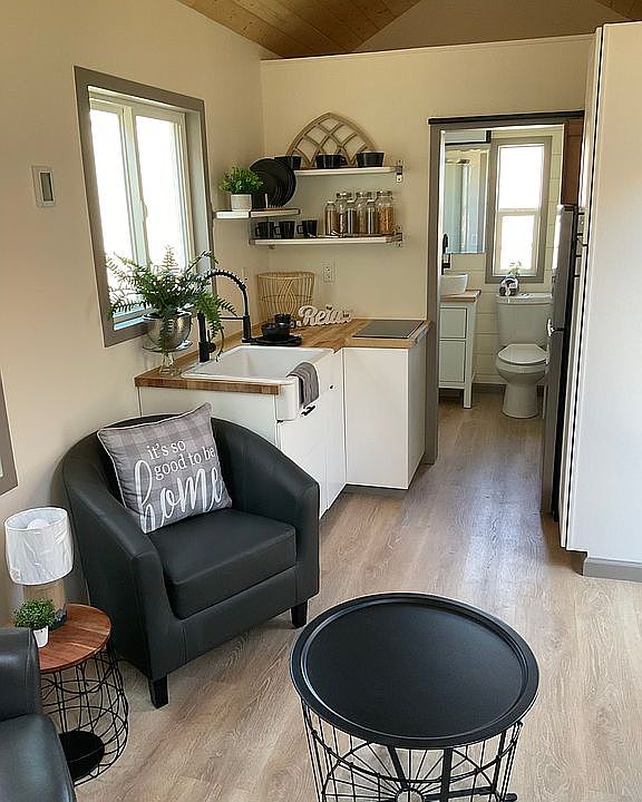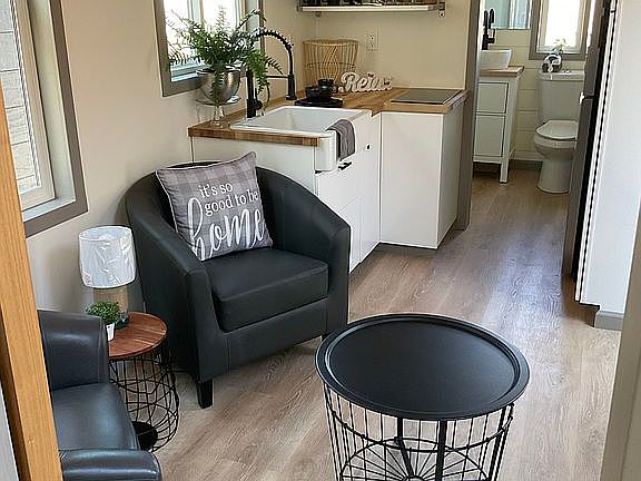 Brand new custom tiny home with all high end finishes and amenities soon to be located within the Shasta Glen Mobile Home Park. This spacious tiny home features a traditional gable style roof, lots of large windows, vaulted ceilings, open floor-plan, storage loft, full laundry, radiant heated floors, butcher block countertop with high end appliances, fireplace, pre-installed wall TV mount, washer/dryer, storage loft, and many more upgraded features throughout. Located in Shasta Glen Mobile Home Park on a large lot, the possibilities are endless to add features like a large deck, additional storage/office structure, or a covered car port. We have 5 of these homes in various colors on order. The one in the photos attached is completed but if there are additional features you want, we can accomodate those requests on the next home being built now.