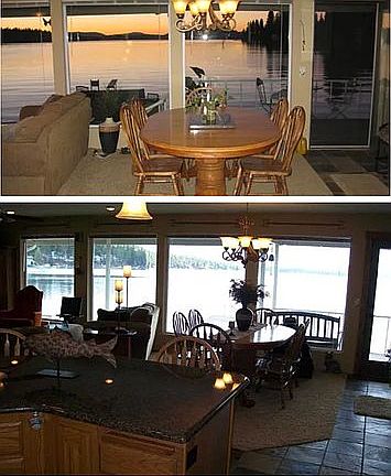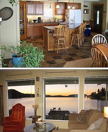 This Primary Loon Lake 142 ft Waterfront Home offers Privacy, Sandy Beach, Flat Lot,1,372 sq ft garage w/lg Pantry, Boat House & a lg Storage Room Above that could be made into a small apartment. Only one neighbor!! Granite Counter Tops, Carpet, Slate Floors, Fireplace Wood/Gas, Walk In Pantry off kitchen, OPEN FLOOR PLAN w/view of full length of lake. 35ft deep at the end of a Lg Dock, Patio, Hot Tub, Beach area with tree rope.