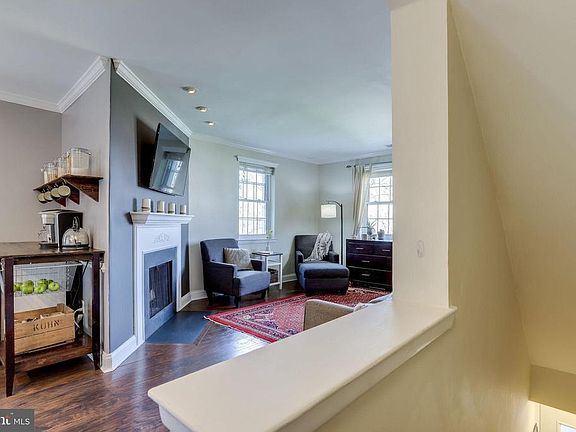 Don't miss this rarely available 875 sq ft top floor, end unit condominium located in The Arlington! This spacious 2-level, 2 bedroom, 1 bathroom property has been beautifully renovated and includes a large rear balcony with views of trees, a wood burning fireplace plus extra windows throughout - light & bright. Stunning open floor plan is perfect for everyday living and entertaining. Notable features include wood floors on the main and 2nd levels, main level lighting wired for smart home, and a nest thermostat. The gourmet kitchen offers granite counters, white cabinets, stainless steel appliances, new refrigerator (2020), 2 large pantries, chic tile backsplash, under mount sink with brushed chrome hardware. The kitchen opens to the dining area with designer pendants lights, crown moulding and access to rear balcony. The spacious living room includes a cozy wood burning fireplace with mantle and a coat closet. The 2nd floor boasts crown moulding, a Master Bedroom with 2 walk-in closets and a ceiling fan. The secondary bedroom also has a ceiling fan and a large double closet. 2nd floor hallway includes a convenient laundry closet with a new stackable washer/dryer (2018), a separate linen closet, and access to the updated bathroom with ceramic tiles and pedestal sink. Community amenities include permit parking, tennis courts, and outdoor pool. Ideally located just minutes to Shirlington Village with lots of shopping, restaurants, grocery, library and theatre, plus close to I-395, public transportation, the Shirlington Dog Park, and the new West Alexandria shopping development. Low monthly condo fees and pets welcome.