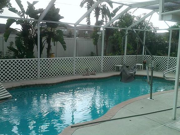Well cared for 3 x 2 CBS home in Braden Crossings with a private in-ground pool. Close to schools, restaurants, shopping, bus line, and main roadways. French doors, irrigation system, screened lanai, vaulted ceilings, living/dining room combo, eating space in kitchen, solid wood cabinets. Granite countertops, stainless steel appliances, reverse osmosis water system, walk-in bathtub for disabled, solar water heating roof system, recently upgraded windows and doors (at almost $14,000). A.C. & roof are only about 3 years old. Numerous upgrades. Stainless steel refrigerator purchased in March 2015. Pictures do not do it justice. This home shows really well! Home was redecorated in recent past. Plumbing was redone in recent past.