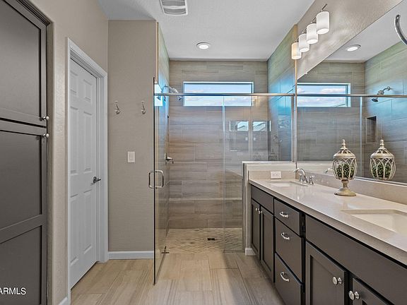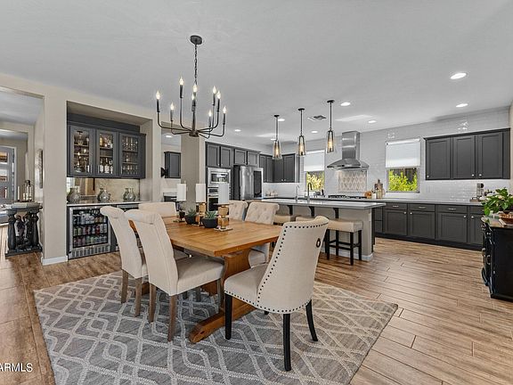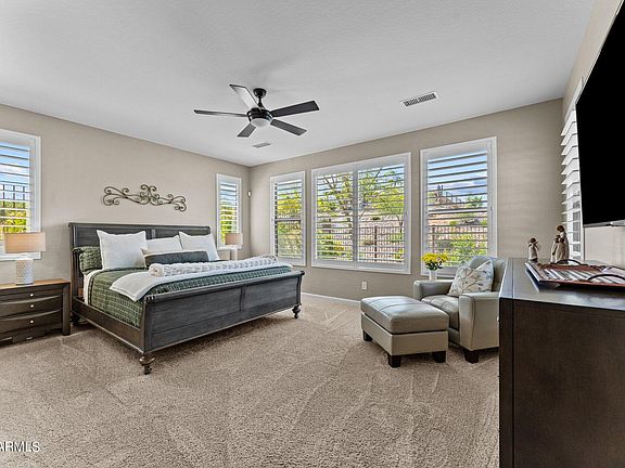 Nestled in the picturesque Wickenburg Ranch, this exquisite home offers a perfect blend of modern amenities and serene desert living. Featuring 2 spacious bedrooms and 2.5 well-appointed bathrooms, the home is designed with an open floor plan that seamlessly integrates a large, flexible space, ideal for a home office, additional living area, or entertainment room. The upgraded kitchen is a culinary haven, boasting a breakfast bar, a large island with ample seating, and state-of-the-art appliances, ensuring every meal is a delight to prepare and enjoy. Custom shutters adorn the windows, providing both privacy and an elegant touch to the home's interior. Step outside to the fully fenced yard, where beautiful desert landscaping creates a tranquil retreat. The backyard is perfect for both relaxation and entertaining, featuring a cozy fire pit and a covered patio where you can enjoy the stunning desert sunsets. This home is a true gem in Wickenburg Ranch, offering a lifestyle of comfort, convenience, and natural beauty.
