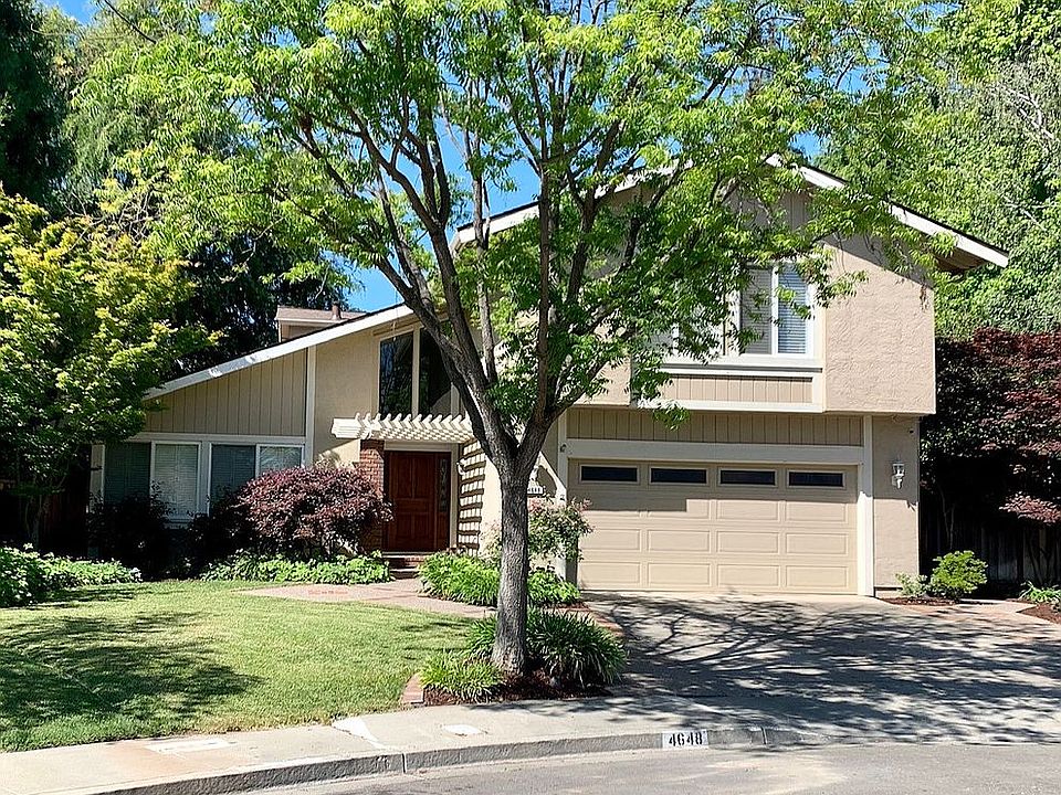 LOCATION LOCATION LOCATION -Close walk to Downtown and all three Top-Rated Schools, Ace Train, Parks and Walking Trails. This Beautiful North East Facing home is at the back of a court with only 5 homes. Expanded Meadowbrook Model in the Desirable Creeks Bend Area of Pleasanton. Step Inside to a Large Formal Living Room and Dining Room with Vaulted Ceilings and Gas Fireplace, Perfect for Entertaining. Updated Kitchen with Granite Countertops, Decorative Backsplash, Stainless Steel appliances including Built-In Double Ovens, Electric Range, and Built in Microwave. Family Room has Wood Burning Fireplace and Gorgeous Built in Cabinetry. Five Large Expanded Bedrooms, including a Full Bedroom and Full Updated Bathroom Downstairs. Master Bedroom has a Unique Private Office Area for your Work from Home needs. Crown Molding, Recessed Lighting, Updated Paint, and a New Roof add to the Wonderful Features of this Home! Large & Private Pie Shaped Back Yard with Mature Trees and Garden Areas.