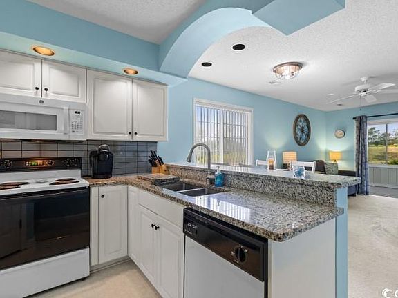 Nestled within the prestigious golf course community of Eastport in Little River, this charming 2 bedroom, 2 bathroom condo offers a rare blend of comfort, convenience, and breathtaking views. Situated on the coveted first floor and boasting an end unit location, this fully furnished retreat promises a lifestyle of ease and sophistication. Step inside to discover a spacious and inviting living space adorned with tasteful furnishings and modern accents. Natural light floods through large windows, illuminating the interior and offering glimpses of the lush green fairways of the golf course and the serene waters of the Intracoastal Waterway. The kitchen is a chef's delight, featuring elegant granite countertops and a newer microwave oven, providing both style and functionality. Adjacent, the dining area provides a perfect spot for enjoying meals with family and friends while taking in the picturesque views. Both bathrooms have received thoughtful upgrades, with the hall bath boasting a professionally upgraded, high-end shower complete with a lifetime warranty and Luxury Vinyl Plank (LVP) flooring for added durability and style. Transition effortlessly to the rear screened porch, equipped with upgraded windows, allowing for year-round enjoyment of the tranquil surroundings. Whether sipping morning coffee or unwinding with a sunset cocktail, this space is sure to become a favorite retreat. As an owner in Spinnaker Bay, you’ll have access to fantastic amenities including two swimming pools, one of which is a saltwater pool located just steps from your front door, eliminating the need to drive. This condo is being sold as-is, but with an acceptable offer, the owner is offering a generous credit towards new flooring, appliances, and more, allowing the new owners to personalize the space to their liking. Reach out to your agent to inquire about the details of this enticing offer. Don't miss out on the opportunity to own a piece of paradise in Spinnaker Bay at Eastport. Schedule a showing today to experience firsthand the charm and allure of this exceptional condo before it's too late!