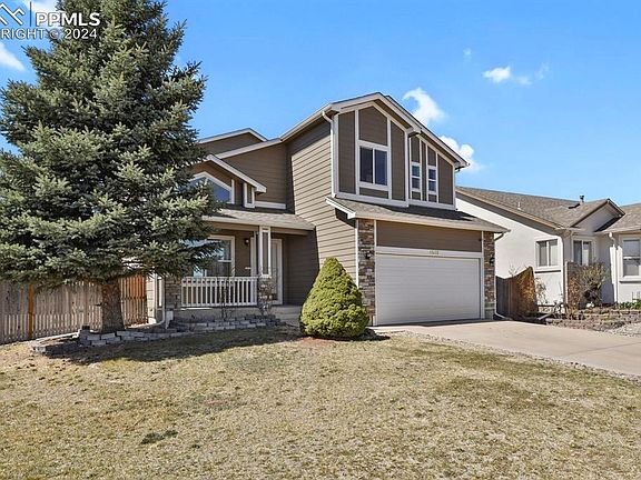 A rare opportunity to own a home with unobstructed panoramic mountain views from Sangre de Cristo to Pikes Peak, situated on a spacious cul-de-sac lot and backs to open space! This stunning Mountain View Home, constructed by Classic Homes, features an open and bright floor plan filled with natural light, encompassing 4 bedrooms, 4 bathrooms, 2,732 sq. ft., soaring cathedral ceilings, a large covered front porch, and a fenced backyard. The home includes a formal living room, an open and spacious kitchen with ample cabinets and countertops, and an inviting family room with a cozy gas log fireplace and walk-out to the rear patio. The expansive primary suite features French doors, dual vanities, and a walk-in closet. The fully finished basement offers a large family room, an additional bedroom, and a full bathroom. No HOA. Enjoy a short distance to the 7.70-acre Windmill Mesa community park with a playground, and green space, conveniently located near Fort Carson, Peterson Air Force Base, and just minutes from I-25.