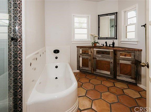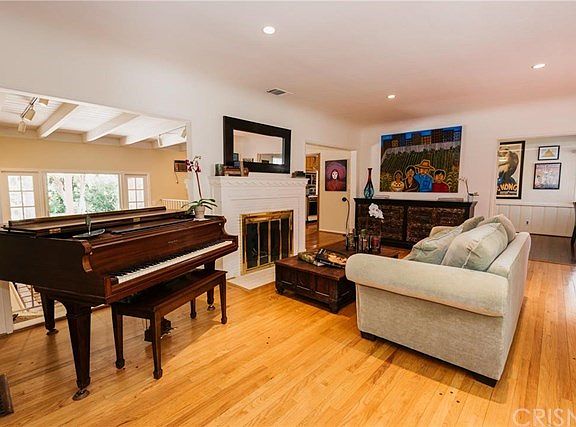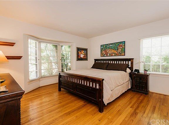 Charming two bedrooms and two bathrooms one story house with a huge lot. Open floor plan with gleaming hardwood floors. Warm living room with coved ceilings and wood burning fireplace. Second bedroom and family room with French doors opening to gorgeous backyard. Large master bedroom. Den/office could be a third bedroom. Remodeled kitchen with ceramic tile counters and oak cabinets. Great Sherman Oaks location, perfect retreat, tastefully redone.