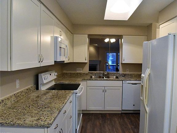 A stunning wooded ravine showcases this beautiful ranch condo. Bright new eat-in kitchen with skylight shows off the new white cabinets, granite countertops and new stainless sink and faucet. New dishwasher, stove, microwave and disposal. Coat closet and large pantry wall with pull-out shelves. Living room complete with fireplace and sliding doors to deck with a view. First floor Master bedroom with deck access has walk-in closet plus his and hers closets leading to the Master Bath. First floor laundry and linen closet. Lower level has a spacious family room, large bedroom and bath with walk out deck. Oversized attached 2 car garage with loads of built-in shelving. Freshly painted top to bottom. Close to shopping and highways.