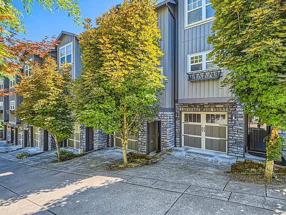 STUNNING VIEWS! Prepare to be wowed by this beautifully maintained Contemporary Townhome/Condo perched in the sought after JOHN'S LANDING/LAIR HILL neighborhood. Panoramic views of the Willamette River, Sellwood Bridge and Cascades! Private, quiet street with gated entry. High-end finishes throughout including Maple floors, hand-finished Pine doors, quality blinds and railing with Wrought Iron accents. High ceilings and lots of storage space. Kitchen features Slab Granite counters, pantry, full appliances including Gas Stove and opens to the Dining area and spacious Living room with cozy fireplace & slider to the sunny Deck. Two Vaulted Owner's Suites upstairs with their own baths, Primary bath with Dual sinks, jetted tub and two full closets with organizers. Ground level has a deep, tandem Garage and behind it is a Bonus room perfect for an Office or work out space with windows and door to the covered Patio with raised beds and great view. LOW HOA DUES / managed by the owners! Enjoy the nearby amenities including restaurants, coffee shops and walk along the river or on Terwilliger. MIN TO DOWNTOWN, SOUTH WATERFRONT & OHSU!