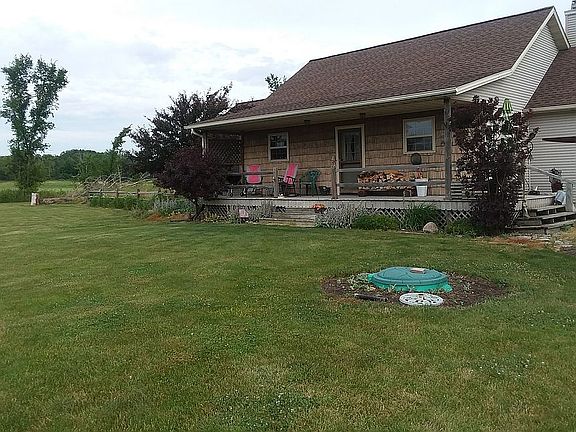 New built pole barn, concrete epoxy flooring. 2-10 foot tall garage doors. Large Trex deck off of back. Nice, quiet almost 4 acres rural setting with 700 acre farm land behind home. Rural with great neighbors. Home updated with solid Hickory flooring, new fixtures. Geothermal heat. Dry basement. -Great neighbors. -2.49 acres is a perfect setting for campfires, family get togethers, even overnight tent camping. -Large country kitchen moves you directly into the spacious, vaulted ceiling living room with a stone mantle fireplace, looking out over partially wooded back yard. -Rural road very picturesque if you enjoy walking, jogging or bicycling.