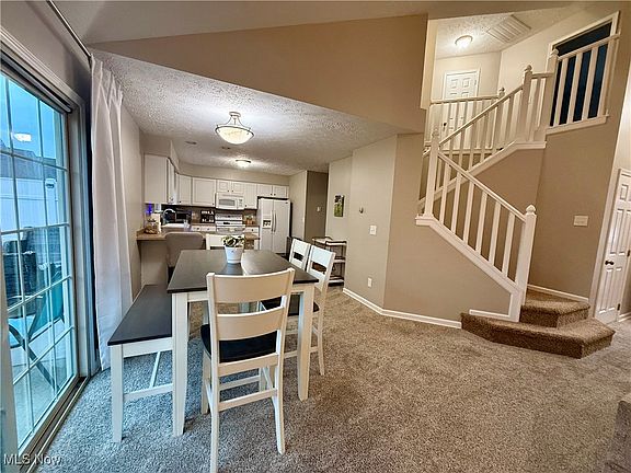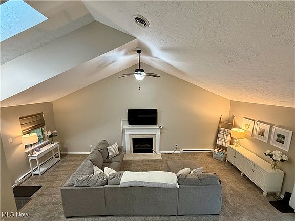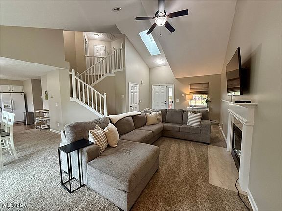 Welcome to this beautifully updated impeccably maintained condo in the highly desirable Pleasant Lakes neighborhood in Kent, Ohio. This condo has 3 bedrooms, including a first floor bedroom, 2 full bathrooms, including a 1st floor full bathroom with walk in shower, and an oversized 2 car garage with plenty of storage and additional attic space. This condo has a plentiful amount of natural light, along with a 2-story cathedral ceiling of an open floor plan that was completely re-painted in 2023. The large living room has an electric fire place that leads to the huge private concrete patio (extension new in 2024) and the dinning area has plenty of room for your large gatherings. Next to the dinning area is a the large kitchen with a peninsula bar with more seating. The back hall leads to a very large 1st floor bedroom with deep closet space. Full bath with shower (completely renovated in 2024) is steps from the 1st floor bedroom as well as the laundry (hot water tank new in 2025), 2 car garage and kitchen. The 2nd floor includes two bedrooms (renovated in 2024) that connect to a jack and Jill bathroom with tub shower combo. The primary bedroom (updated in 2024) has a HUGE walk-in closet and another double door closet. Additional bedroom upstairs also has a walk-in closet. Schedule your showing today as this beautiful condo will not last long!
