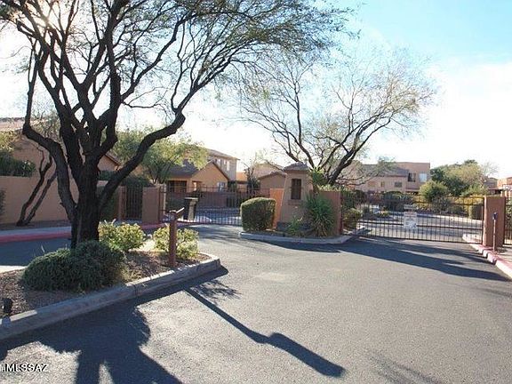 Welcome to Hacienda Del Rio, a quaint gated community, conveniently located at the Swan and Camp Lowell corridor. This inviting, spacious home boast an open floor plan with soaring 20 foot plus ceilings, many windows for natural lighting, and ceramic tile flooring throughout entire first level. The kitchen offers granite countertops, oversize island with bar seating, stainless steel appliances, and open to the family room with built in dry bar. It's perfect for family and entertaining. Main level also has one bedroom and full bathroom. Upstairs loft overlooks formal living and dining. Large comfortable master suite includes his and her closets, dual vanities and garden tub with separate shower. Interior freshly painted including garage. Low maintenance backyard with covered patio and red