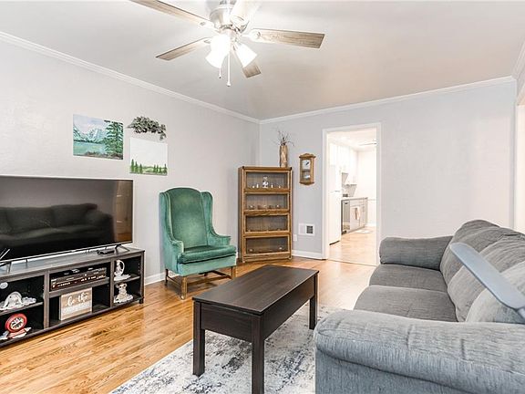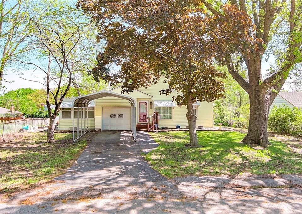 Main level living with a huge backyard! This two bedroom, two bathroom Ranch features beautiful hardwood flooring throughout, updated energy efficient windows, fresh interior paint, and a lovely sunroom with a gas insert fireplace. The cozy eat in kitchen has painted cabinets, extra counter space, double oven with gas stove, and a built in microwave. Loads of storage from big closets, to an oversized mudroom, and laundry room conveniently located. Rest easy knowing this property was well maintained, including a new roof AND new sewer line, with other plumbing fixtures and multiple clean outs updated, as well. There's a patio in the back overlooking the oversized lot, and carport leading to the single garage in the front. You can't beat this Northland location with all the shops/grocery/convenience you can want, and easy highway access to get you where you need to go. Ready to move right in!