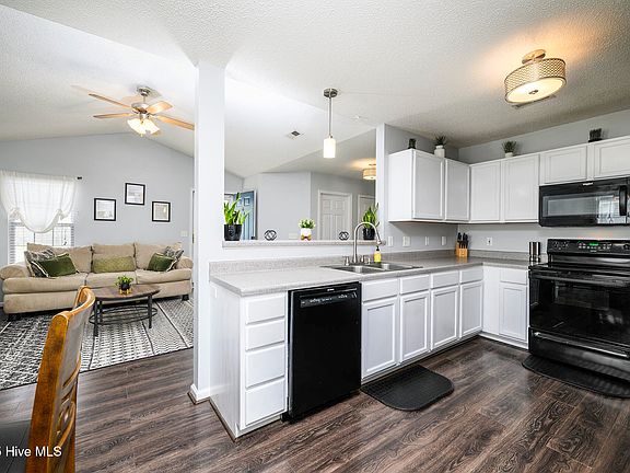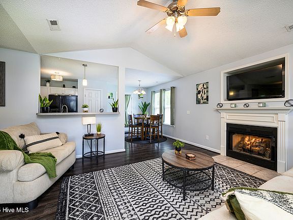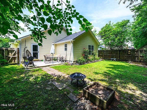 Welcome to 4649 Rainmaker Drive - where comfort, convenience, and the charm of New Bern living come together. Nestled just minutes from the Industrial Park, CarolinaEast Medical Center, and the vibrant shops and restaurants of historic downtown, this one-story home with a 2 year old roof offers easy access to everything you need, including a quick commute to MCAS Cherry Point and the beautiful beaches of North Carolina. You'll love the adorable front porch that welcomes you home, and the one-car attached garage adds everyday convenience. Enter inside to an inviting open-concept living space with LVP flooring throughout the main living areas and bedrooms, a vaulted ceiling, and a cozy gas log fireplace that creates the perfect gathering spot. The kitchen offers a pantry for added storage and flows seamlessly into the dining area, where the back door opens to a fully fenced yard with a patio and fire pit—ideal for relaxing evenings or weekend entertaining. The home offers three bedrooms and two full bathrooms, including a spacious primary suite with a walk-in closet and an en suite bath featuring a walk-in shower. The laundry room includes built-in shelving and leads to the garage—making it a perfect drop zone or mudroom area. Whether you're enjoying a peaceful night in or exploring all that New Bern has to offer, this home puts you right where you want to be. Contact us today for your private showing!