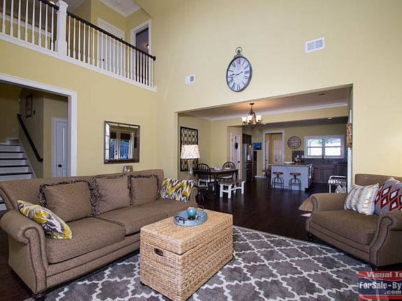 Original owners (2013). 3-sides brick. Open floor plan. Main-level master and 2nd bedroom. Hardwoods. Granite/stainless kitchen. 9'+ ceilings. Two-story family room. Flat, fenced backyard. Private back view. Swim community. Sidewalks. Underground utilities.