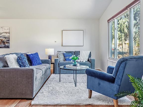There is so much to love about this home! A “great room”, open-concept main level with gorgeous hardwood floors greets you as you walk in the front door; light & bright with updated lighting, vaulted ceiling and skylights. The kitchen has solid wood cabinets, custom island, and stainless-steel stove & refrigerator. Up a few steps is a bathroom with jetted tub and the 3 bedrooms, including the primary bedroom with en suite bathroom. The basement has another bathroom with a shower, a large rec/family room with wood burning fireplace and storage. The home has been freshly painted and re-carpeted for the new owners. There is also a brand new furnace and newer water heater. Outside you will find a covered back patio, large barn-style, detached storage shed, and a large yard just waiting for kids, dogs, friends, garden or whatever your heart desires. Located in a quiet cul-de-sac just minutes from Cherry Creek State Park and the Denver Tech Center (DTC), and walking distance to elementary, middle, and high schools in the Cherry Creek School district. About 30 minutes to Denver International Airport and about 30 minutes to downtown Denver. This home is move-in ready, a good value and a great place to call home!