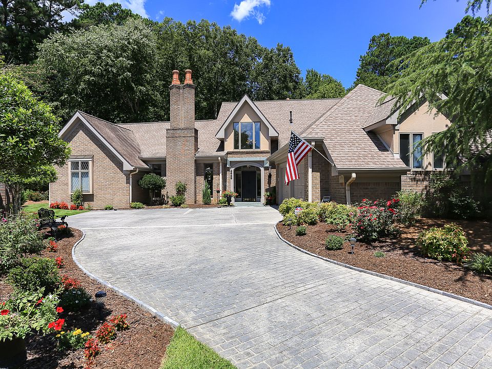 Gorgeous European style home with a stunning new kitchen is a must see! Situated in a quiet Dunwoody neighborhood. Open floor plan w/soaring ceilings and custom plaster moldings. Large family room w/fireplace and picture window overlooks impeccable gardens in a peaceful flat backyard. Main floor owner's suite w/trey ceilings, dual closets, large bathroom and French doors to a patio is located off from a stately den with built-ins and 2nd fireplace. Upper bedrooms are very large w/private bathrooms attached. Screened patio off from the kitchen for Al Fresco dining.