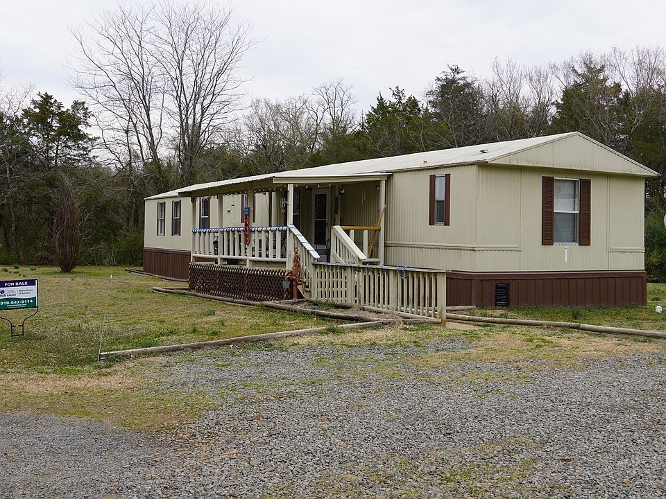 Location: This property is located at 46492 DeHart Lane in Heavener, OK, in the community known as Hontubby. The LeFlore County seat, Poteau OK, distance between Poteau OK and Hontubby Oklahoma is roughly 25 miles away. The larger city of Fort Smith AR., population 80,000, is 46.5 miles from the property. Nearby points of interest include the Ouachita National Forest, the scenic Talimenma Drive, Heavener Runestone, Wister Lake State Park, the Kiamichi River, Sardis Lake, Clayton Lake, Cedar Lake, Hocahtown and Broken Bow. There are many opportunities for the avid outdoor enthusiast in this part of Oklahoma, including fishing, hiking, boating, hunting, horseback riding, canoeing, and off roading with Jeeps and ATVs. The southeastern quadrant of LeFlore County is surrounded by mountains, lakes, rivers, and clear water streams. Fishing includes bass, catfish, crappy, perch and a variety of other pan fish. There is excellent hunting in the area for white tailed deer, quail, squirrels as well as other small game. Dallas, TX is roughly a three-and-a-half-hour drive. Tulsa is roughly a two- and half-hour drive, and Oklahoma City, three. This property is a quick walk to the local Hontubby Store, which serves breakfast, lunch, and dinner, with specials on the weekend. LAND: the home sits on a level 1.16 acres of land that is partially wooded. A seasonal Creek borders the backyard. A portion of the property lies across the county road on the West side, and it is completely wooded. There is plenty of room for a garden and fruit trees if desired. SERVICES: Services include Kiamichi electric, Summerfield rural water, phone, school bus route and mail delivery. HOME: the home is a 1999 singlewide mobile home that has 1,056 square feet of heated and cooled living area. The home features a large living room, 4 bedrooms, two baths, spacious kitchen/dining, and utility closet. There are both front and rear wooden decks that are covered and have handrails. The home has been well maintained and is in move in ready condition. Room descriptions and dimensions include the following: FRONT PORCH: 8.6 x 20, Covered with wooden railings and steps to sidewalk leading to covered carport. LIVING ROOM: 14.3 x 16, Carpet, white walls/ceilings, ceiling fan with light, double windows. KITCHEN/DINING: 13 x 16, wood look laminate flooring, white and yellow textured ceiling/walls. There is a utility closet off the kitchen that houses the washer/dryer connections. BEDROOM #1: 8.6 x 11.6, Carpet, white textured walls and ceilings, closet. MASTER BEDROOM: 11.7 x 16, Carpet, walk-in closet, white textured walls and ceiling, gray trim. MASTER BATH: white panel bead board walls, wood look laminate floor, tub/shower, single vanity with cabinetry below, white ceramic backsplash, mirrored medicine chest and lighting above. BEDROOM#3: 8.6 x 11.6, Carpet, white textured walls and ceilings, and grey trim. BEDROOM#4: 9.6 x 10.2, Carpet, Metal. STORAGE BUILDING #1: 10 x 12 STORAGE BUILDING #2: 10 x 12 TAXES: $238.10 PRICE: $78,000.00 DISCLOSURE:This property is in a 100 yr. floodplain and will require flood insurance if a lender is involved.