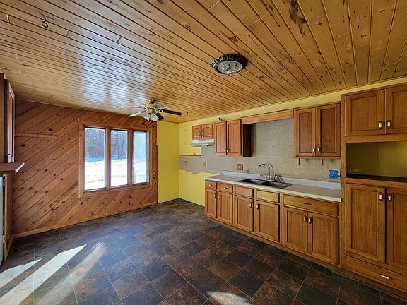 This peaceful retreat offers the perfect "Up North" getaway, whether as a year-round cabin or a relaxing escape from the hustle and bustle. Surrounded by several lakes and abundant public land, the location is ideal for outdoor enthusiasts. The home offers flexible living options, with the potential for one-level living by relocating the laundry to the spacious area outside the primary bedroom. Need four bedrooms? One of the current bedrooms was originally two separate rooms and could easily be converted back. Garage space is abundant, with three separate garages, all featuring concrete floors, electricity, and metal roofs. The main garage is insulated and set up for heating with an outdoor wood stove, while two additional garages provide ample storage for vehicles, equipment, or recreational gear.