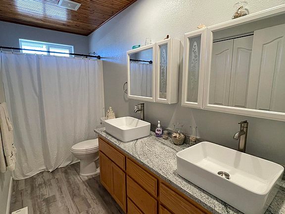 Amazing Turn-Key 3 bedroom, 2 bath home on 3.04 Acres!! Kitchen has new granite countertops with plenty of counter space and cabinets for storage. The large Primary bedroom has a walk in closet and access to the deck and above ground swimming pool for those hot days when you want to cool off. The back patio off the deck area is a great place to BBQ and for entertaining or just to relax! Heating is propane forced air or on those cold winter days you can use the oil stove to cozy up too. Laundry room has a utility sink, storage, and an area the you can use as a desk or arts and crafts. Most of the interior has been painted recently. The open style floor plan has a spacious living room with large windows, dining area has sliding glass doors going onto a covered tiled patio where you can relax and enjoy the views of the mountains or just enjoy the beautiful landscaped oasis. The attached 2 car garage, covered R.V. Parking, and the storage container that has been made into a workshop with a window, power and ventilation is perfect for outdoor storage needs. For guests that may want to come and stay there are two 30 amp R.V. hook-ups. New propane 50 gallon hot water heater was installed in 2023 and hot water heater has a circulating pump which supplies hot water faster. A must see!!