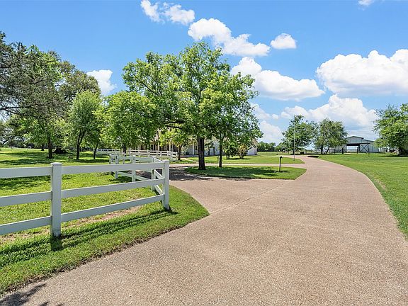 Gorgeous Equestrian Property with Beautifully Updated Home, Superb 6 stall barn, 150x250' riding arena, fenced pastures, and so much more! Located in the highly desirable Hills of Childress Creek in China Spring, TX, this absolutely beautiful horse lover’s dream property sits on 8.42 pristine acres and offers the perfect balance of luxury and functionality. Built in 2003, the Austin stone home features 3 spacious bedrooms, 2.5 baths, and stunning updates throughout—including decorator colors, vaulted ceilings, wood and tile floors, formal dining, breakfast area, and a large kitchen with an island, brand-new appliances, and shaker-style cabinets. Enjoy peaceful mornings on the wrap-around porch or screened-in back porch, overlooking a fenced backyard and lush, partially tree covered pastures. A circular driveway, extra parking, and a 2-car detached garage add convenience, while the white PVC fencing enhances the property's curb appeal. Equestrians will fall in love with the 150’x250’ riding arena, 6-stall horse barn with automatic waterers, tack & feed room, wash room with tankless water heater, concrete center aisle, additional barn with chicken coop, hay storage, and more. Complete with loafing shed, round pen, RV hookups, solar panels, and covered equipment storage, this move-in ready estate is the ultimate equestrian dream!
