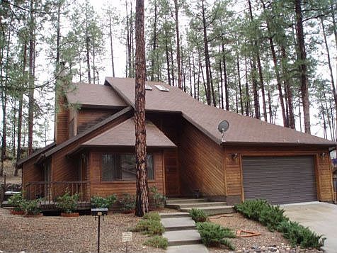 Nestled in the Pines in Desirable Haisley Homestead. Charming Cedar Sided Home with Main Level Living, 3 BDRM, 2.5 BATH, Almost 2000 Sq Ft w/Covered Ceilings, Granite, Master on Mail Level. Two BDRMS + Full Bath Upstairs + Office/Sewing Set-Up. Skylights bring Sunshine, Central A/C, Cozy Wood Burning Stove w/Brick Surround. Enjoy Peace + Quiet + Beauty of Surrounding Tall Ponderosa Pines from Wrap-Around Deck. Community Pool + Tennis Courts.