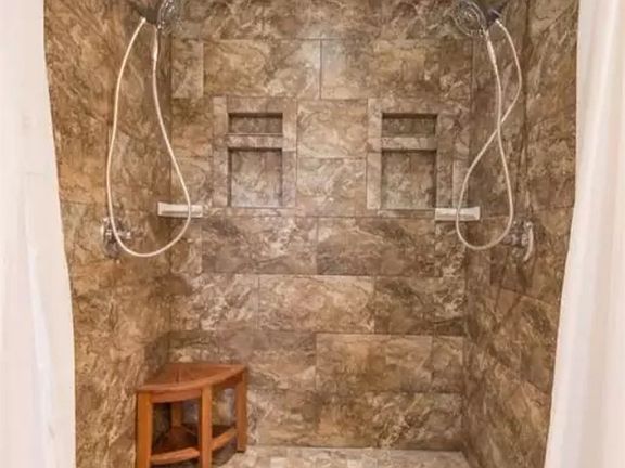 - Breakfast Bar, Pantry, Walk-In Closet(s), Cathedral Ceiling(s), Eat-in Kitchen, Open Floorplan, Tub/Shower Combination, Countertops-Solid Surf, Main Level Bedroom Suite, Stand Up Shower, Guest Quarters, Utility Sink, Custom Cabinetry