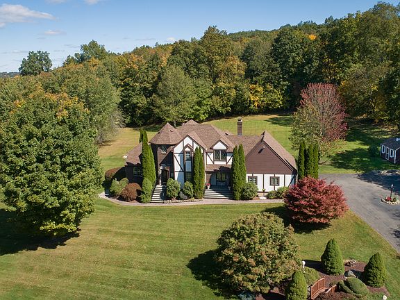 Pristine 2339 sqft English Country Tudor stately set on 5+ private & pastoral acres with park-like grounds, mature & exotic trees, water garden, beach sand fire pit area & stonewalls. This 3-4 BR/2.5 B residence is in Watertown's most desirable area surrounded by a blueberry & an apple farm set back from a bucolic country road, and welcomes horses. A dramatic 13x13 foyer with a high ceiling greets you as you enter with granite floors and a sparkling chandelier, and sometimes used as a 2nd dining room for larger gatherings. The formal living room has a vaulted ceiling with large windows on 3 walls allowing lots of natural light to shine through. The remodeled eat-in kitchen with granite tops, SS appliances and bay window is open to the sunken family room-both with wood floors. Enjoy a glowing fire in the family room on a chilly day, or on a warm day, open the French door and step on to the large deck to basque in the sun. Upstairs, has new Brazilian cherry wood floors in the hallway and MBR. The 'spoil yourself' master suite offers a large bathroom with a huge Jacuzzi, a balcony to savor a cup of coffee in the morning sun and a newly remodeled walk-in closet/dressing room with custom built-ins. The lower level has a walk out with a glass slider to a brick patio. Complete with an over-sized 2 car attached garage & new roof in 2015. Mechanicals: CAIR, CVAC, alarm system and new water tank in 2018. Only 12 minutes to Quintessential Litchfield & under 2 hours to NYC. Agent/Owner