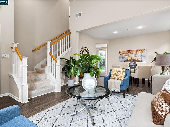 Situated in the Garin Corners of Brentwood, this 3-bedroom, 2.5-bath home combines 1,741 sq. ft. of living space with a desirable court setting near schools, parks, and everyday amenities. The main level showcases LVP flooring, recessed lighting, and a welcoming living room that flows into the dining area and kitchen with granite counters, stainless appliances, and abundant cabinetry. A spacious family room with an adjacent half bath adds versatility for gatherings, movie nights, or play space. Sliding doors open to a private patio retreat with mature landscaping, ideal for dining or relaxing outdoors. Upstairs, the primary suite includes a walk-in closet, tray ceiling, and a refreshed bath featuring a recently installed shower enclosure and vanity mirror. Two additional bedrooms, a full bath, and a dedicated laundry room complete the upper level. Fresh carpet, modern lighting, and abundant natural light enhance the home throughout. Located in Garin Corners, this home includes HOA-maintained front landscaping, walkability to top-rated Garin Elementary and Edna Hill Middle, with Liberty High nearby. Shopping, dining, parks, Highway 4, and BART are all within easy reach.