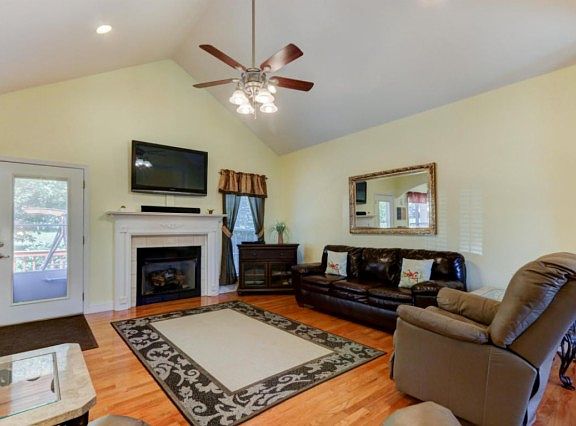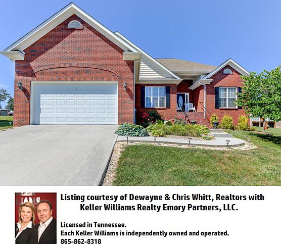 Darling, smoke free and pet free home with 3 bedrooms and 2 baths. 9 foot ceilings with trey ceiling in master bedroom and vaulted ceiling in living room. Large, main level master suite with walk-in closet. Double vanity, large mirror, and jet tub in master bath. Hardwood floors with tile in bathrooms and carpet in bedrooms. Attached garage will fit two small cars. 18X20 storage building or detached garage with a roll-up door. Numerous shade trees, 2 apple trees and 4 blueberry. Home is on a no outlet street surrounded on three sides by Norris Lake with a beautiful view of Cumberland Mountains. Minutes from Cove Lake State Park and Royal Blue, as well as shopping and dining.