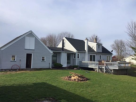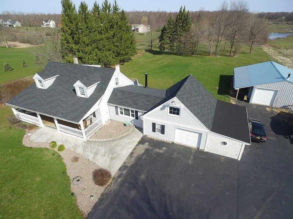 BEST BUY!! SO CLOSE TO COUNTY LINE! HEATED POLE BARN! Great living space in this beautiful Cape w/master bdrm/bath on 1st floor! HUGE FRONT PORCH for relaxing summer nights! Patio doors in mstr bdrm (w/lots of storage) lead to deck w/HOT TUB! Step out to huge party deck overlooking 3 + acres, previously used as an ATV/dirt bike track! HUGE laundry room (off tiled mudroom, next to garage w/loft) on 1st floor w/SO MUCH SHELVING! 2 br's upstairs share full bathroom, w/closet space & privacy! Walkout basement is partially finished & could be extra bedroom, playroom or office! POLE BARN has front & rear entrance & covered concrete porch for bonfire fun; rain or shine! Inside pole barn: workshop, concrete floor, plenty of storage AND A WOOD BURNING STOVE! New TEAR OFF ROOF, fresh paint on porch.