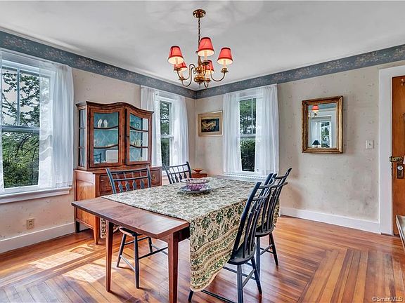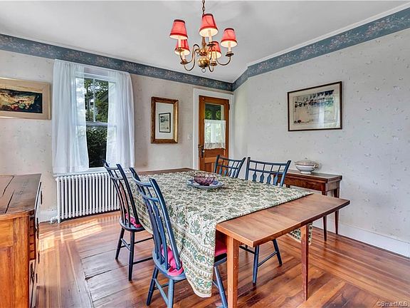 This picturesque historic farmhouse is located only one mile from the beautiful Town Green in Guilford. It is sited beautifully on a .7 acre lot. The home has a 2 year old architectural roof, vinyl exterior siding, plus multiple patios and gardening areas. If you like the charm of an antique, you'll love this home. The covered side porch deck leads to the 12'x14 foot airy kitchen with a 6'x8" breakfast nook with built-ins. The main floor has 9' ceilings and a wonderful flow. You'll love the natural light that spills into this home. The spacious living room has a wood-burning fireplace set on an angle so you can enjoy the beauty and warmth of the fire. The dining room is just off of the living room for ease of entertaining. There's a bedroom on the main floor that the owners currently use as a study/library/ home office. The built-in shelves can store your books and treasures. On the second floor, there are 3 bedrooms plus a full bath. The walk-up attic has ample room for storage, plus another room( unheated used as a bedroom/office. Enjoy the beauty of living in a quintessential New England town close to sandy beaches, shops, restaurants and downtown. Only 90 miles from New York City. OFFERS DUE BY 5/17/2021 AT NOON