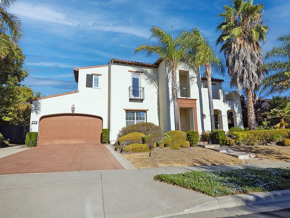 Welcome to this stunning home in San Ramon's highly sought-after Gale Ranch community at the Gallery. This beautiful Mediterranean-style residence offers 5 bedrooms, plus a flex room (potential 6th bedroom), and 4 full bathrooms, providing plenty of space and comfort for your family. The house is flooded with natural light. Situated on a private lot with no rear neighbors, enjoy breathtaking views of the canyon, hills, and Mt. Diablo. The main level features a convenient guest suite with a full bathroom, ideal for visitors or extended family. Upstairs, a versatile loft and a theater room with a private balcony can easily convert into a 6th bedroom. The primary suite is a serene retreat, complete with heated flooring, a sunken tub, a stall shower, and dual vanities. At the heart of the home, the chef’s kitchen boasts Bosch stainless steel appliances, dual Sub-Zero refrigerators, a large island, and cherry wood cabinets—perfect for cooking and entertaining. Additional features include hardwood, tile, and carpet flooring, two fireplaces, and dual-zone central A/C and heating for year-round comfort. Nestled in a quiet cul-de-sac with low HOA fees, and within the top-rated schools, this home is a rare find! Don’t miss out!