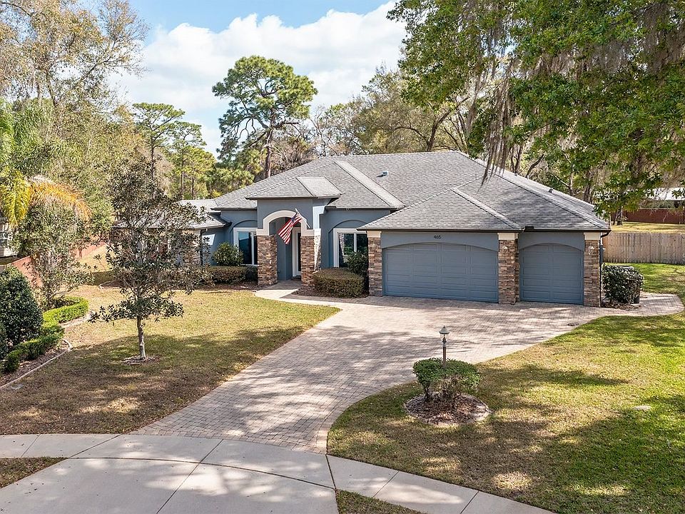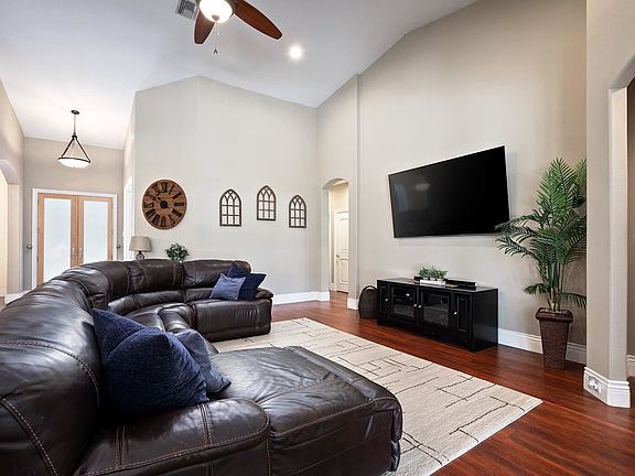 LOOK NO FURTHER! THIS GORGEOUS, IMPECCABLY MAINTAINED 4/3 HOME SITS ON THE LARGEST LOT IN THE COMMUNITY WHICH JUST UNDER ¾ ACRES. UPON DRIVING INTO THE CUL-DE-SAC, YOU WILL NOTICE THE FRESHLY PAINTED EXTERIOR ALONG WITH THE BRICK PAVER DRIVEWAY AND 3 CAR GARAGE. UPON ENTERING THE HOME, YOU ARE GREETED WITH A FORMAL OFFICE WITH CUSTOM BUILT-INS AND CROWN MOLDING, ALONG WITH A SEPARATE DINING ROOM ADORNED WITH A COFFERED CEILING. LARGE OPEN FAMILY ROOM OVERLOOKING THE KITCHEN, WHICH FEATURES GRANITE COUNTERTOPS, DOUBLE OVENS, A COOKTOP, FRIDGE, BUILT IN MICROWAVE, DISHWASHER AND SOLID WOOD CABINETRY. ADDITIONALLY, THERE IS AN EAT-IN SPACE IN THE KITCHEN WITH DIRECT VIEWS TO THE OVERSIZED BACKYARD AND POOL DECK. THIS HOME FEATURES A SPLIT BEDROOM FLOORPLAN, WITH THE MASTER BEDROOM HIGHLIGHTING A VAULTED CEILING AND THE MASTER BATH SHOWCASING DUAL SINKS, TILED STAND UP SHOWER WITH A DIGITAL TEMPERATURE CONTROLLED A 6 PERSON SETTING, AND RAIN SHOWER. THIS HOME ALSO HAS A THEATRE ROOM WITH PROJECTOR, FULLY INSULATED SOUND PROOF WALLS, AND DITIGAL LIGHT CONTROL PANEL. UPON ENTERING THE BACKYARD, YOU WILL BE IN AWE OF THE BEAUTY OF THE PRIVATE SPACE, PEBBLE TECH SALT WATER POOL, AND BRICK PAVER DECK. OTHER UPGRADES TO THE HOME INCLUDE DOUBLE PANE ANDERSON WINDOWS AND ANDERSON SOLID DOORS, 4 ZONE BRAND NEW AC, FOAM INSULATION BLOCKING ACCESS POINTS IN THE CEILING IN THE GARAGE, CUSTOM WINDOW BLINDS, INSIDE LAUNDRY ROOM WITH STORAGE, PLUMBING FOR ADDING SUMMER KITCHEN IF DESIRED, WALK IN CALIFORNIA CLOSET IN MASTER BEDROOM, AND AMPLE STORAGE SPACE IN THE 3 CAR GARAGE. COME AND SEE THIS HOME TODAY!