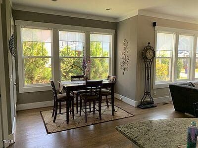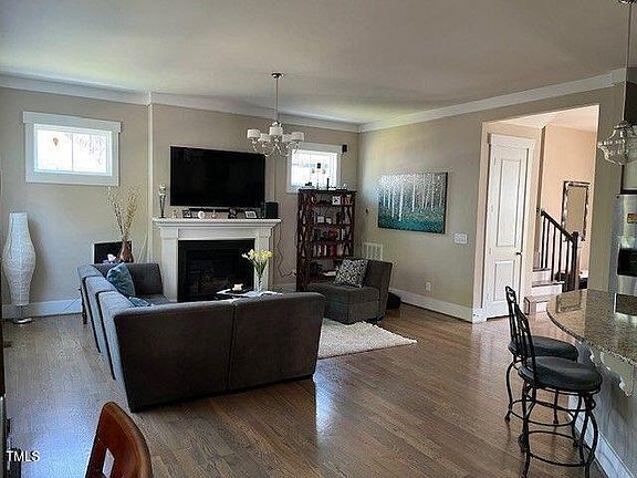 Stunning home in highly sought-after Chapel Hill neighborhood. Built in 2016, offers 4 bedrooms, 4 full bathrooms. Build out 3rd floor bonus room with full bath. Spacious living in a charming open layout kitchen with serving island, dining area and family room with fireplace. A guest bedroom and full bath is perfect for guests. A flex room near the front of the house is ideal for an office. The second floor includes a secluded owner's suite with spa bath, a game room for family relaxation, 2 bedrooms, full bathroom and a convenient laundry room. Hardwood floors and beautiful screened-in porch. Located across the UNC Carolina North Forest offering 750 acres of walking and mountain biking trails. Tankless water system, sealed crawl space and many more standard features. Alarm system. Minutes walk/bike on paved walking trail to Chapel Hill/Carrboro Schools (#1 state ranked school district in NC): Zoned for McDougle Elementary, McDougle Middle Schools and newly renovated Chapel Hill High School. Community pool and clubhouse. Minutes to I40, downtown Chapel Hill Franklin Street, Carrboro and UNC or Duke.