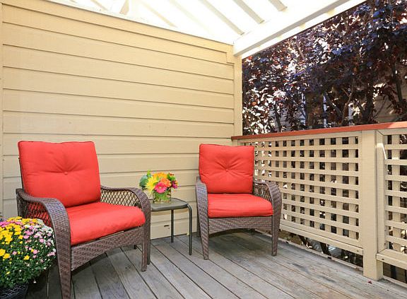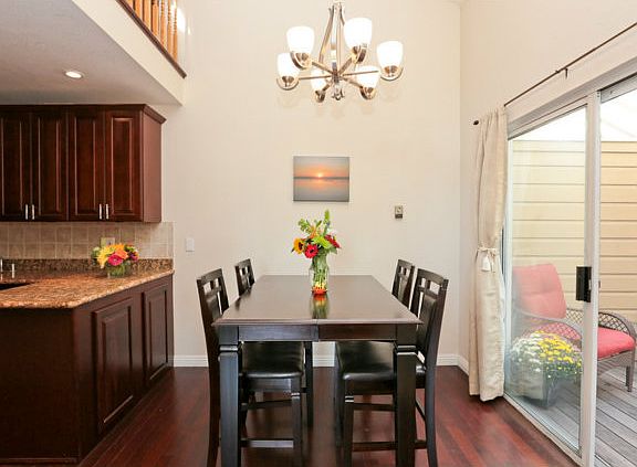 Bright and pleasant 2/2 with spacious loft (easily could be 3rd bedroom.)Corner unit with vaulted ceilings has been tasteful upgraded with granite kitchen, tile bathrooms, and mahogany hardwood floors. Desirable complex with plenty of parking and detached 1 car garage. Don't miss this!