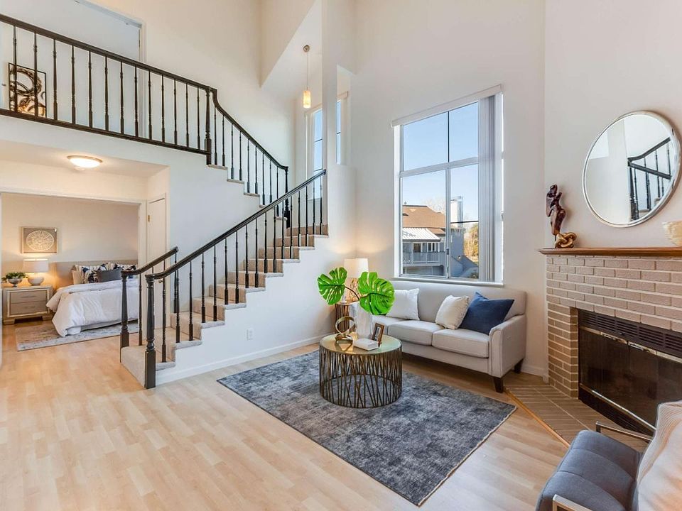 PRIVATE CORNER UNIT WITH LOFT ; This top-level corner unit in sought-after Peninsula Landing provides quiet, private surroundings with easy access to top amenities. Lagoon and waterfall features blend with bridges and footpaths, creating a soothing ambience throughout the community and evoking a sense of coastal living. Sky-lit interiors designed for relaxation boast soaring ceilings and oversized windows. The open-concept kitchen displays granite countertops, stainless appliances, a breakfast bar, and custom cabinetry. Both primary suites include wraparound closets and remodeled baths. A loft overlooks the living and dining areas, ideal as an office or sitting room. Enjoy in-unit laundry, two patios, easy-care floors, and more. Near shopping, dining, tech campuses, parks, and scenic trails. Quickly reach freeways and excellent schools like Sandpiper Elementary and Ralston Intermediate (buyer to verify).