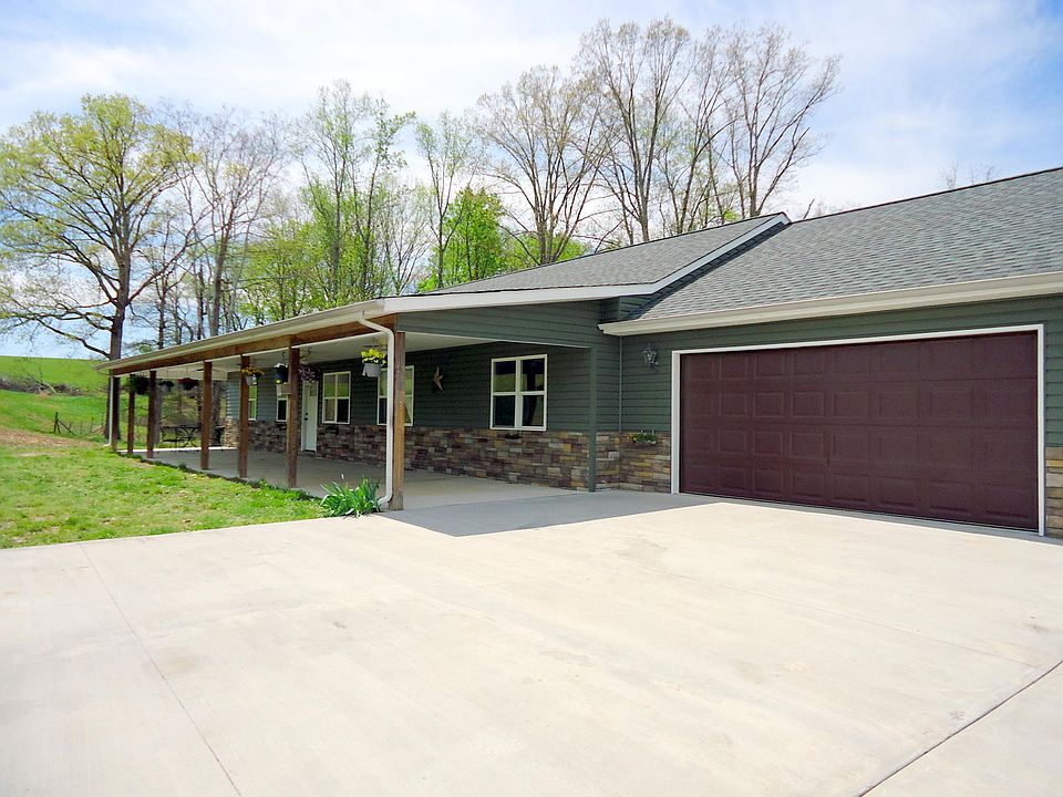 Private Country Living! Very nice 1800+/- square ft home with split floor plan containing 3 bedrooms, 2 baths, bonus room and office. (Bonus room is currently in use as additional bedroom for 4 total.) Master suite has jacuzzi tub and walk-in shower. Great room features vaulted ceilings, open floor plan to kitchen, built in shelving, and electric fireplace with stone surround. Raised panel pine doors throughout the home give the space a country feel. Two washer/dryer hook-ups located in the attached 2 car garage can accommodate the needs of any large family. Outside, a large covered porch provides shade for the entire front side of the home and a rear screened in porch overlooks the Guest House at the back of the property. This second home is approximately 900 square feet with 2 bedrooms/1