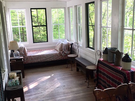 Charming cabin on wooded lot overlooking Lackawaxen River. 2 bedroom/1 bath features artist-designed built-ins, cathedral ceiling, skylights, sleeping loft, enclosed porch and wood deck. On-site well (non-potable), on-site septic, wood-burning stone and propane gas heater.