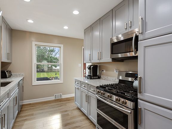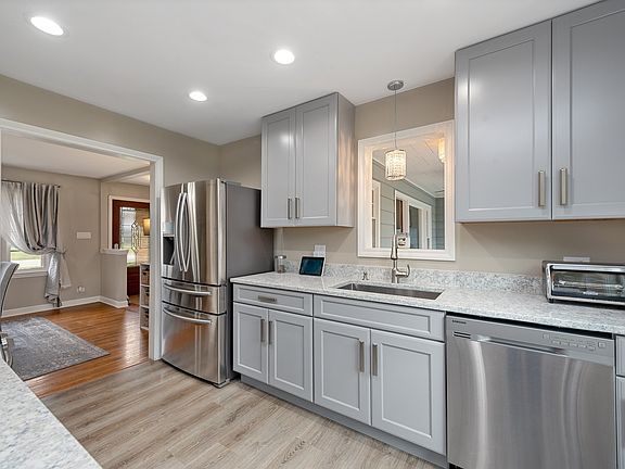 Multiple offers received, highest and best by 3pm today. Looking for that ranch? Here you go. 3 beds, 2 bths, both redone. Gorgeous redone kitchen, living rm with fireplace, dining rm, another bonus area, full basement partially finished with access to over sized 2 car garage. Lovely sun porch, huge patio, and all this sitting on a fenced double lot! Did I mention hardwood fls, yup, throughout, kitchen has wood laminate floors, baths have ceramic flooring. The rest is all the real deal! Lots of fresh paint, 99% of the windows have been replaced. All the walls have been taken down and insulated, new drywall installed , painted & new electric. All new plumbing too. Blown in insulation in the attic, 5 yr old roof. Laundry area is in the basement, no walls to make it a room. The 4th bedroom is in the basement as well, Which is not even listed. The hot tub does stay. This is an amazing home. Do not miss it