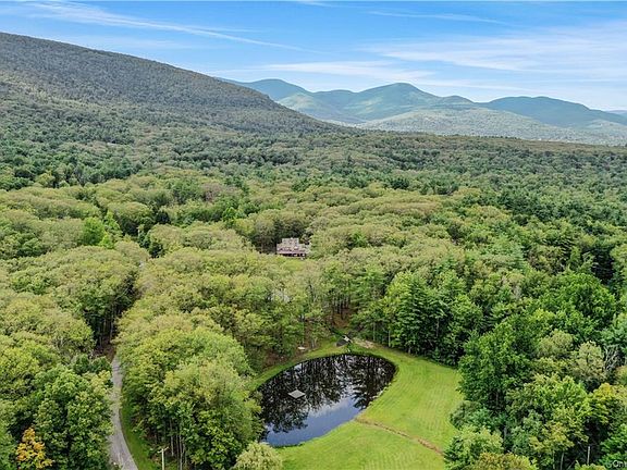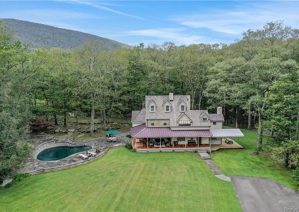 Available for the first time in 50-plus years, this iconic Hudson Valley home boasts extraordinary character and charm in the perfect setting -- a secluded 10-acre nook of ponds and woods just minutes from the Ashokan Reservoir. The house, a masterful blend of timeless farmhouse style, craftsmanship and luxury, is the polar opposite of cookie cutter, with classic window awnings, cedar shakes and locally quarried bluestone steps setting the gracious tone from the moment you pull up a long driveway and arrive at the wrap-around front porch. Inside, a cozy paneled keeping room with a pegged beam ceiling opens to a large and sunny living room and gourmet kitchen, bracketed on one side by an authentic working Rumford fireplace, and on the other by a dining room with a double-height wall of French doors and windows leading to a terraced bluestone patio and pool. Visually, the space opens up, from cozy to dramatic, in thoughtfully calibrated stages that call to mind a distinguished farm house being expanded and improved over many charmed decades of life. The ground floor also includes another beamed den with a double-height ceiling and woodstove, plus a full bathroom and laundry. A stunning open staircase, with a beautiful cherrywood banister milled on site, rises 3 stories to the 4 bedrooms and 2 more full bathrooms upstairs, including a massive primary suite with an oversized bathroom with soaking tub. The other bedrooms, featuring pegged beam framing and dormer windows, are particularly charming. For overflow guests, there's also a separate 2-level guest house with bathroom, overlooking a spring-fed pond, with another larger pond sited just across the winding driveway. Located on one of the quietest and most sought-after roads in the Hudson Valley, the property feels wonderfully secluded, despite being minutes by bicycle from the reservoir and its popular hiking trails, 15 minutes by car from Woodstock and 2 hours from NYC. Additional Information: Amenities:Guest Quarters,ParkingFeatures:2 Car Detached,