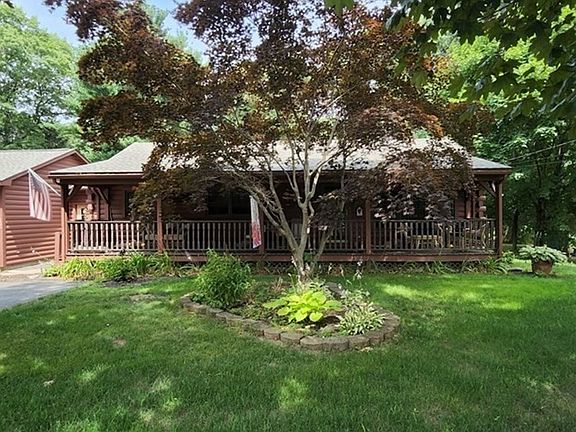 Looking for ONE LEVEL living? This beautiful LOG HOME is situated in a peaceful setting and yet convenient to all the advantages of living in a city. This unique 3 bedroom, 2 FULL BATH home is SET BACK off the road and has been meticulously maintained. Attached 2 car garage makes those snowy or rainy days bearable. Wood burning stove on the 1st floor and a pellet stove in the basement adds to the warmth and character of this home. During the warmer days, enjoy entertaining in the 3 SEASON SUNROOM! Roof and exterior paint are both approx. 2 yrs old. House is set up for a security system, electric fence, and is wired to accommodate a hot tub if desired. Bonus: Gazebo is staying and so are ALL APPLIANCES! Nothing to do but move in and ENJOY! Subject to seller finding suitable housing. SHOWINGS BEGIN IMMEDIATELY!