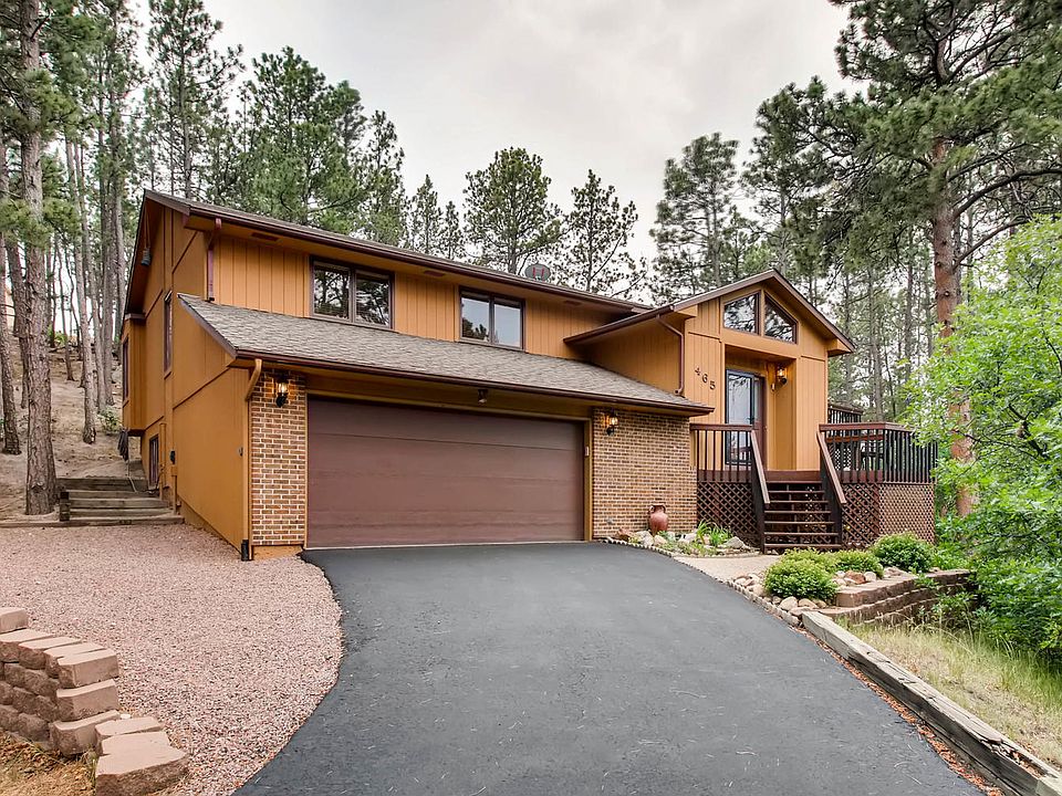 Close to Denver and Colorado Springs. Beautifully maintained, spotless, updated custom home on a private, treed lot. Granite counter tops, hardwood floors, gourmet kitchen with stainless steel appliances, huge family room with fireplace, Crown Moldings, and three decks are just a few features of this amazing home. Adjacent to the kitchen with granite counter tops and access to the deck is the inviting great room with vaulted ceiling and two skylights. The spacious Master Bedroom with his and hers closet has direct access to the ensuite bathroom with granite counter tops and dual vanities and and and an over sized shower. The large family room is warmed by a brick surround fireplace and has garden level windows. CLOSE TO AFA, I-25, AWARD WINNING D-38 SCHOOLS, PARKS, TRAILS, and SHOPPING! Don't miss this one!!!