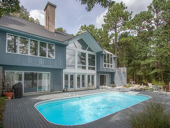 200 Acre Lake! Lakefront living on one of the most desirable locations on Lake Pinehurst with private in-ground pool. Owners reconstructed first level living area adding new large Great room and additional square footage. Re-deisgned, updated Master bath, handsome library with fireplace, 2 ensuite bedrooms on lower level with additional family room and fireplace. ALL THINGS WATER for boating, kayaking, canoeing, sailing, paddle boarding and swimming. Join 2nd Sunday party where owners gather on pontoon boats to socialize. You may never want to leave the house with water views from most every room and two-story windows in the large, open new, Great room. Quality materials throughout with heart of Pine flooring in study and dining rm and imported Mexican tile flooring. UNIQUE!