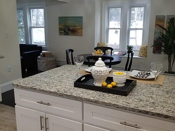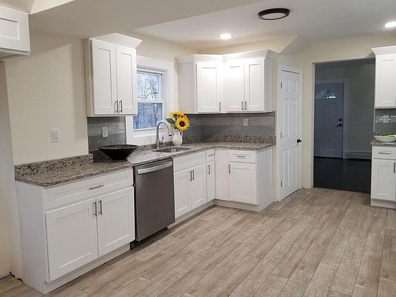 Move right in to this updated Bungalow in great commuter location and large level lot. Featuring a three season porch, a large kitchen with recessed lighting, white cabinetry, glass mosaic backsplash, granite counter-tops, stainless steel appliances and a breakfast bar. Dining area and living room with gleaming hardwood floors. Two full baths with tile surround showers. 4-5 bedrooms with hard wood and bamboo flooring. Spacious deck for social gathering on summer months. Updates also include new windows, new vinyl siding, new roof, new boiler and updated electrical system. Asphalt driveway for 4 cars to be completed and yard to be seeded by April 30th OPEN HOUSE SUNDAY MARCH 31st. 11-12PM. NO SHOWINGS PRIOR TO OPEN HOUSE.