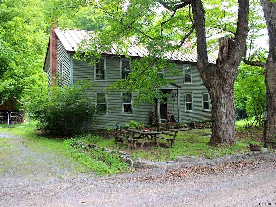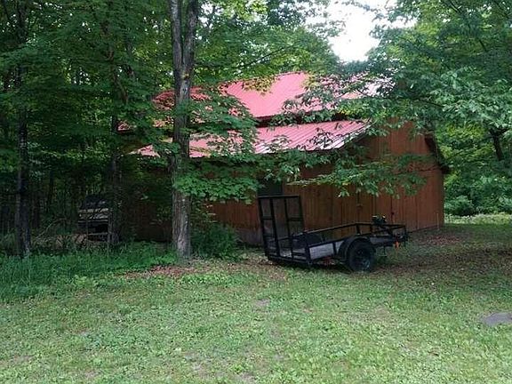 What a property! The main house has 4 bed rooms+2 other rooms, wide plank flooring upstairs (may be on the first floor under carpet and linoleum), a fireplace with heatilator in the living room and lots of original detailing. Plus the attic has foam insulation on the ceiling. There is a newer barn, and older carriage house, a maple sugaring house (huge amount of maple trees behind) and a game house with bar, 3/4 bath, booths and wood floors. All the properties have newer metal roofs (house has a standing seam metal roof). There is a small pond and beautiful gardens. All this on a quiet country road with property on both sides (17 acres with carriage house and 30 acres with the house). The house has two different heating systems. It can be heated with oil or coal or wood.