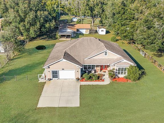 Two Homes on 1.44 Acres | Zoned A1 | No Restrictions Welcome to a truly unique opportunity—this beautifully maintained 1.44-acre property features two separate residences, offering the perfect setup for multi-generational living, rental income, or guest accommodations. Located just 10 minutes from I-75 and 20 minutes to Ocala, this mini-estate is fully fenced, zoned A1 for your animals, and has no deed restrictions. The main residence, built in 2015 by Triple Crown Homes, offers 2,482 square feet of thoughtfully designed living space. Step inside through an impressive 8-foot front door and enjoy the open layout with 9"4-foot ceilings throughout. The split-bedroom floor plan includes four spacious bedrooms and two full bathrooms, plus numerous upscale touches like rounded wall corners, granite countertops, stainless steel appliances, and ceiling fans in every room. A large enclosed lanai provides a peaceful indoor-outdoor retreat, ideal for entertaining or relaxing in the Florida breeze. The primary suite is generously sized and includes dual walk-in closets, a walk-in shower, and a soaking tub for a spa-like feel. Additional perks include a two-car garage with screen sliders, a generator hookup, and a water softener system. Tucked away behind the main home is the second residence, a charming 2-bedroom, 2-bathroom concrete block home with over , 300 square feet of just living space and its own two-car garage. Recent updates include a brand-new roof, and the home offers a comfortable layout, vinyl-enclosed back porch, and an adjoining screened outdoor patio perfect for relaxing or entertaining guests. This second home is ideal for extended family or rental possibilities. The property also includes a storage shed, lush open space with mature trees, and room for livestock, pets, or hobby farming. Whether you're seeking space, flexibility, or rental income potential, this property is a rare find that checks all the boxes. Conveniently located just 10 minutes to I-75, 20 minutes to Ocala, and within easy reach of Gainesville, and just 5 minutes to nearby shopping and dining.