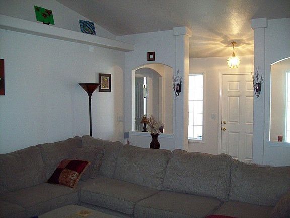 Extremely functional floor plan in this single level home located in Patriot Sub. Split bedroom design features hardwood entryway and ample living room with plant shelves. Spacious kitchen includes pergo flooring,stainless steel appliances/brkfast bar, pantry,tile backsplash and abundant counter space. Luxurious master suite has large walk in closet. Master bath has garden tub/separate shower,dual sinks. Yard includes full sprinkler system and room for RV parking. Three car garage is a bonus!