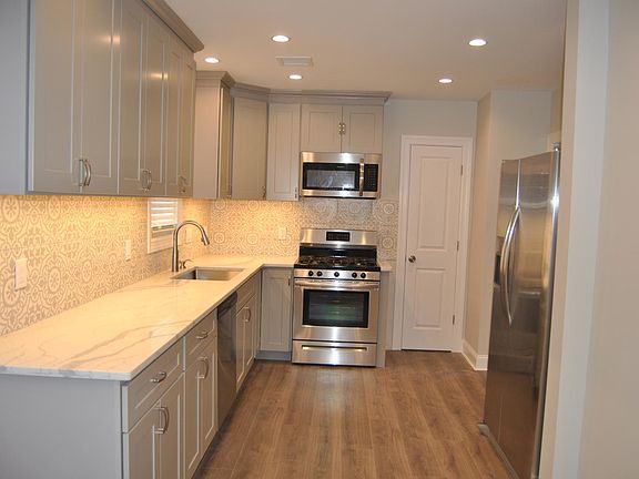 COMING SOON! Completely renovated first floor, 2 bedroom, 2 full bath home with in unit laundry! Tucked into a wonderful neighborhood in Maywood, this newly renovated property features large kitchen with quartz counters, new cabinets, stainless appliances and breakfast nook, spacious living room, new full bath, large master bedroom with on suite full bath featuring double vanity and huge shower, second bedroom and private deck. Use of shared yard and detached garage as well of plenty of off street parking.