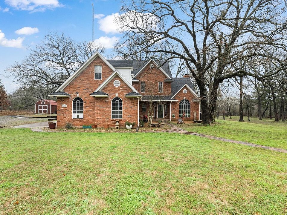 Beautiful two story home is sequestered among mature trees on 4.3 ACRES! UPGRADES GALORE including storm cellar, 80ft Rohr Antenna for internet, huge patio, kitchen & primary bath remodel, flooring, barn & more! Inside is fabulous & MOVE IN READY! Living room showcases a floor to ceiling brick FP w-gas logs, vaulted breamed ceilings & windows that bring in lots of natural light! Eat in Breakfast Nook! Spectacular Kitchen w-island, granite, decorative backsplash & SS apps. Primary Bathroom is impressive with a stand alone tub, his and her vanities with pristine white cabinetry, walk in closet, vessel sinks, framed mirrors plus a separate shower. The Romantic Primary Suite features a beautiful FP w-stone surround & a sitting area! Large Utility room w-built in cabinets plus a sink! Upstairs Study with built-ins! Great sized Guest Bedrooms! Backyard offers a huge backyard patio where you can enjoy sightings of deer, turkeys, ducks & beautiful birds! Enjoy fishing in the stocked pond!
