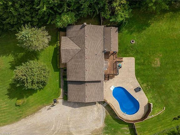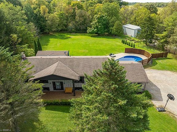 Welcome to your dream sanctuary—a stunning raised bungalow nestled on 1.5 acres of tranquil country paradise, just minutes from city conveniences and highway access. This exquisite property offers the perfect blend of privacy and accessibility, making it an ideal escape from the hustle and bustle. Step into your own personal oasis, where a large fenced yard surrounded by mature trees ensures peace and privacy. The property backs onto the serene Fairchild Creek, offering picturesque views and a calming atmosphere. Enjoy the ultimate in outdoor luxury with a sparkling in-ground kidney-shaped pool (new liner 2023), complete with custom concrete work and a spacious patio area perfect for sun-soaked afternoons. Designed for entertaining and relaxation, the expansive deck features both open and covered areas, making it the perfect venue for gatherings, rain or shine. Unwind in the soothing hot tub, surrounded by nature's beauty. The property boasts a double car garage and ample parking, catering to all your needs. Inside, the home features four spacious bedrooms and two modern bathrooms, providing comfort and convenience for the entire family. A separate entrance from the garage to the lower level offers the potential for an in-law suite, adding versatility to this already impressive home. Although well maintained, a touch of modernization can elevate this space into a stylish and contemporary retreat tailored to your preferences. Don't miss the opportunity to own this exceptional country retreat, where every day feels like a vacation. Your perfect lifestyle awaits!