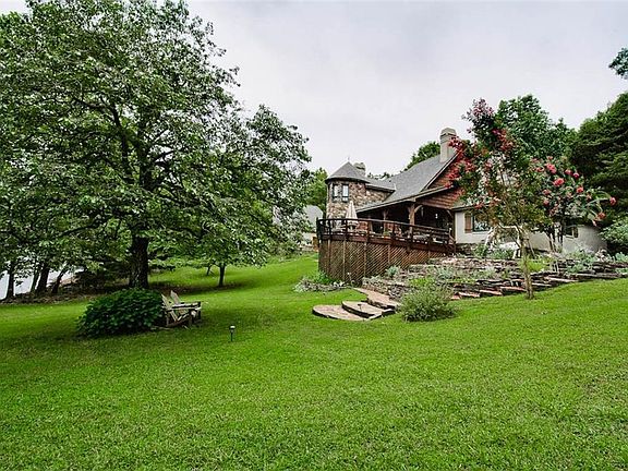 Stunning Beaver Lake home with luxurious finishes & gentle walk to private boat dock. Interior is a masterpiece of design & craftsmanship featuring: 3 fireplaces, 1860's hand hewn cabin beams, antique stained glass door, solid Western Pine slab bar & flooring, restaurant-style 6 burner gas range, sub zero refrigerator. Open living space flows to huge deck with amazing view of the lake & 5.72 acres. Solar-powered boat dock, terraced garden, orchard & stone walkways. Detached 2 car garage with bonus room.